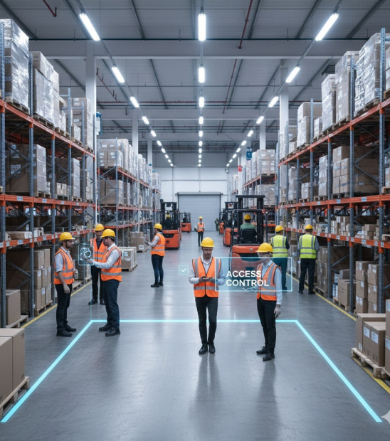 Temel iş sağlığı standartlarını kapsayan akıllı takip sistemi; baret, yelek gibi ekipmanların kullanımını ve izinsiz girişleri gerçek zamanlı denetler. Yangın algılama ve raporlama özellikleriyle riskleri azaltırken, dijital yönetim paneliyle operasyonel süreçleri kolaylaştırır.